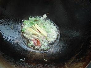(2)热锅凉油,放入蒜末炒香。